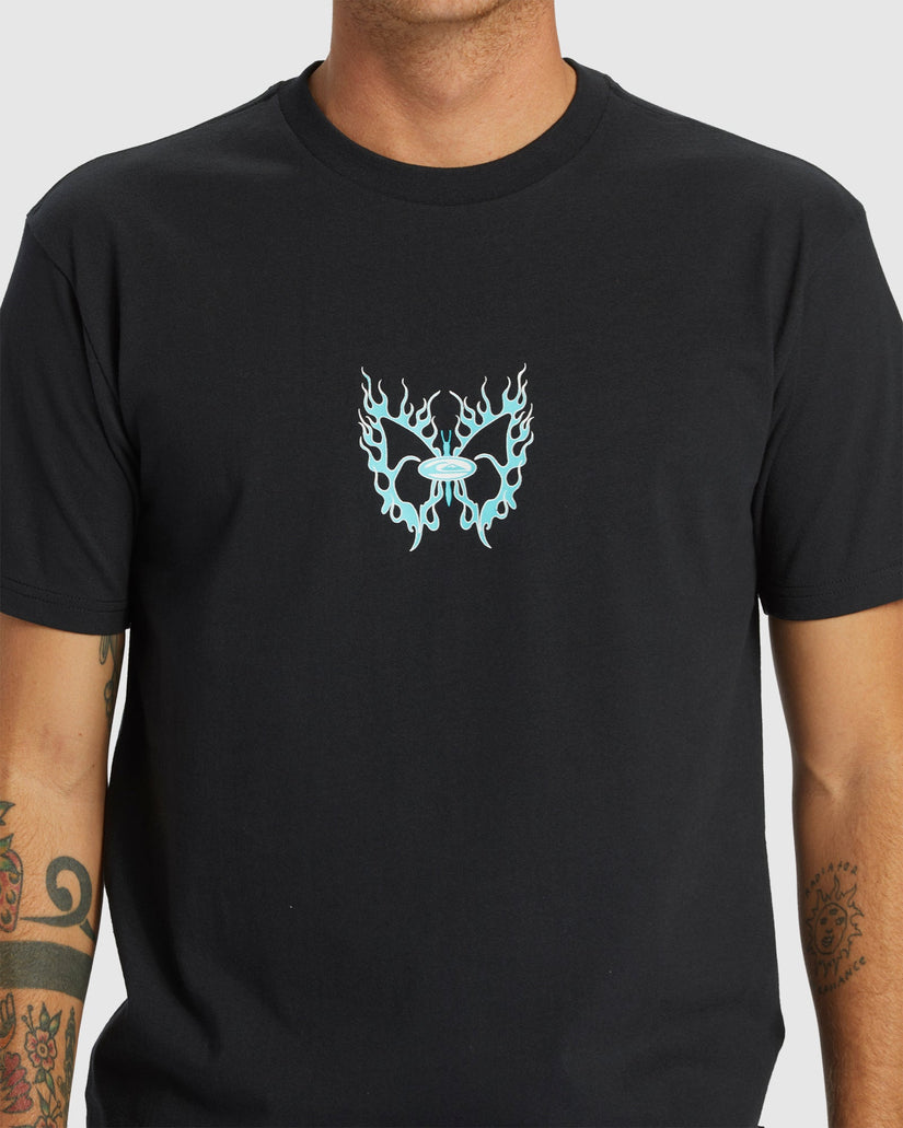 Experience effortless style and comfort with Quiksilver's Butterfly Moe T-Shirt. Made from heavyweight cotton fabric to give it a quality look and feel, this men's crew neck T-Shirt features screen-printed graphics and a woven side seam label for added detail.