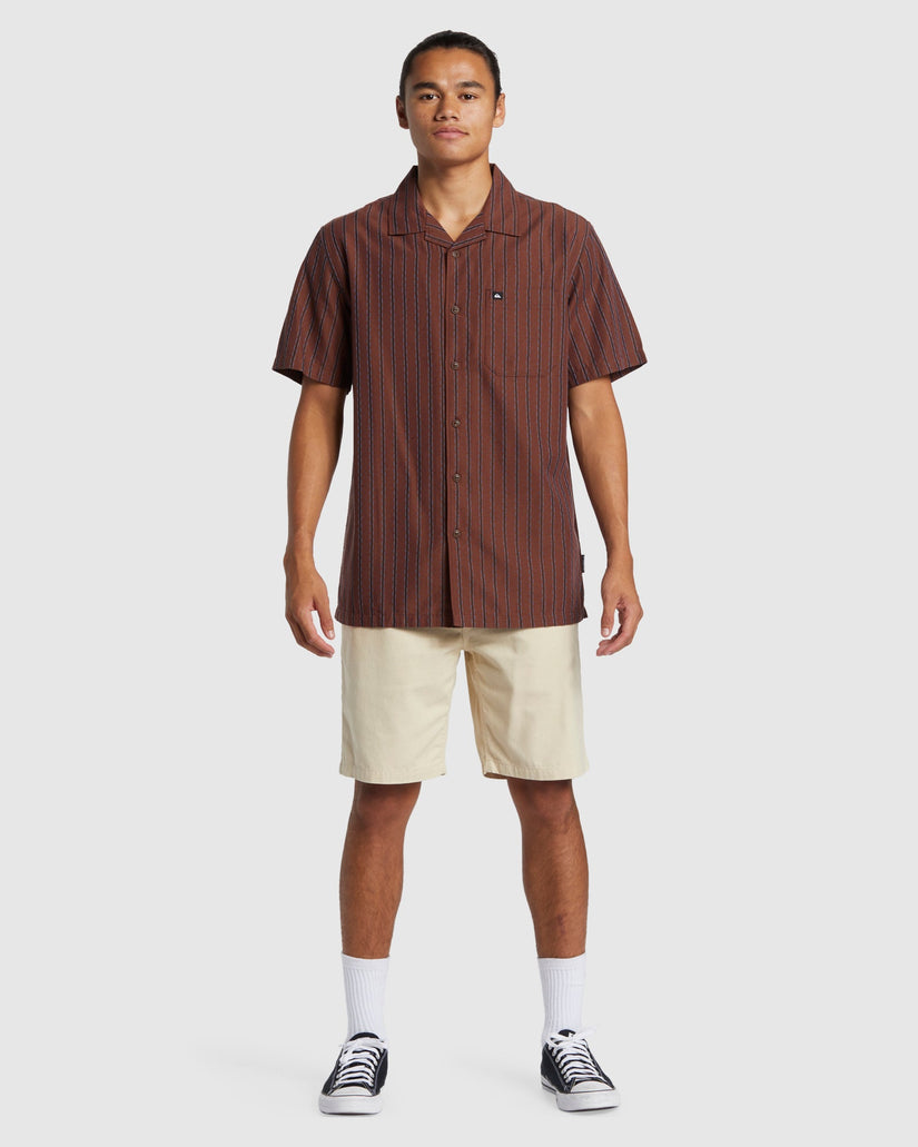 Embrace casual cool with this Quiksilver short-sleeve striped shirt. The cotton-lyocell blend delivers a soft, breathable feel, while the camp collar and chest pocket add a laidback touch. With a regular fit and straight hem with side splits, this versatile shirt works for weekend outings or casual workdays.