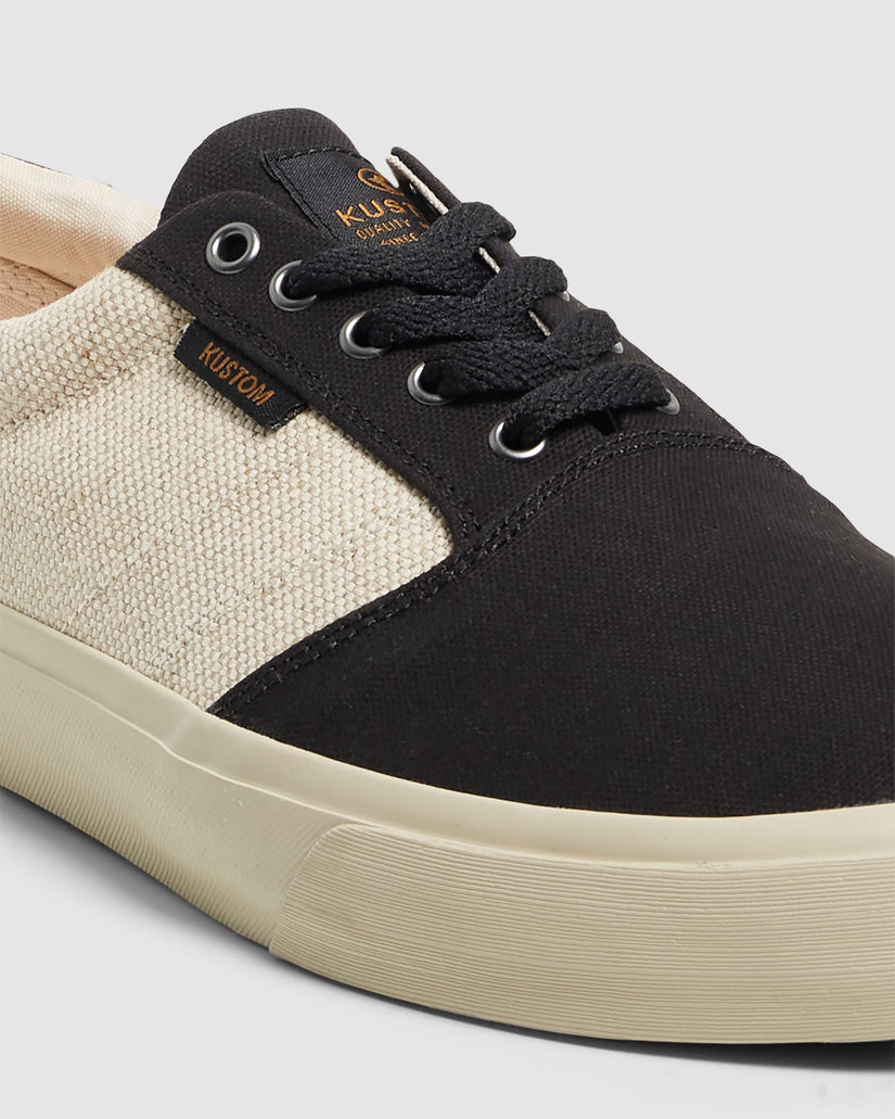 A step in the right direction, the classic Kustom Mens Central Wide now made from an eco-friendly blend of hemp and cotton. Equipped with a natural rubber outsole with a castor bean oil based footbed.Features: Sustainable natural hemp and cotton upper Natural rubber outsole No fabric dyes Castor bean oil based foot bed Material: 80% Hemp 20% Cotton
