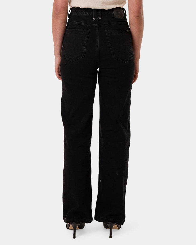 The clean high-rise and straight-leg cut accentuates any shape while the 5-pocket styling keeps it versatile and timeless.