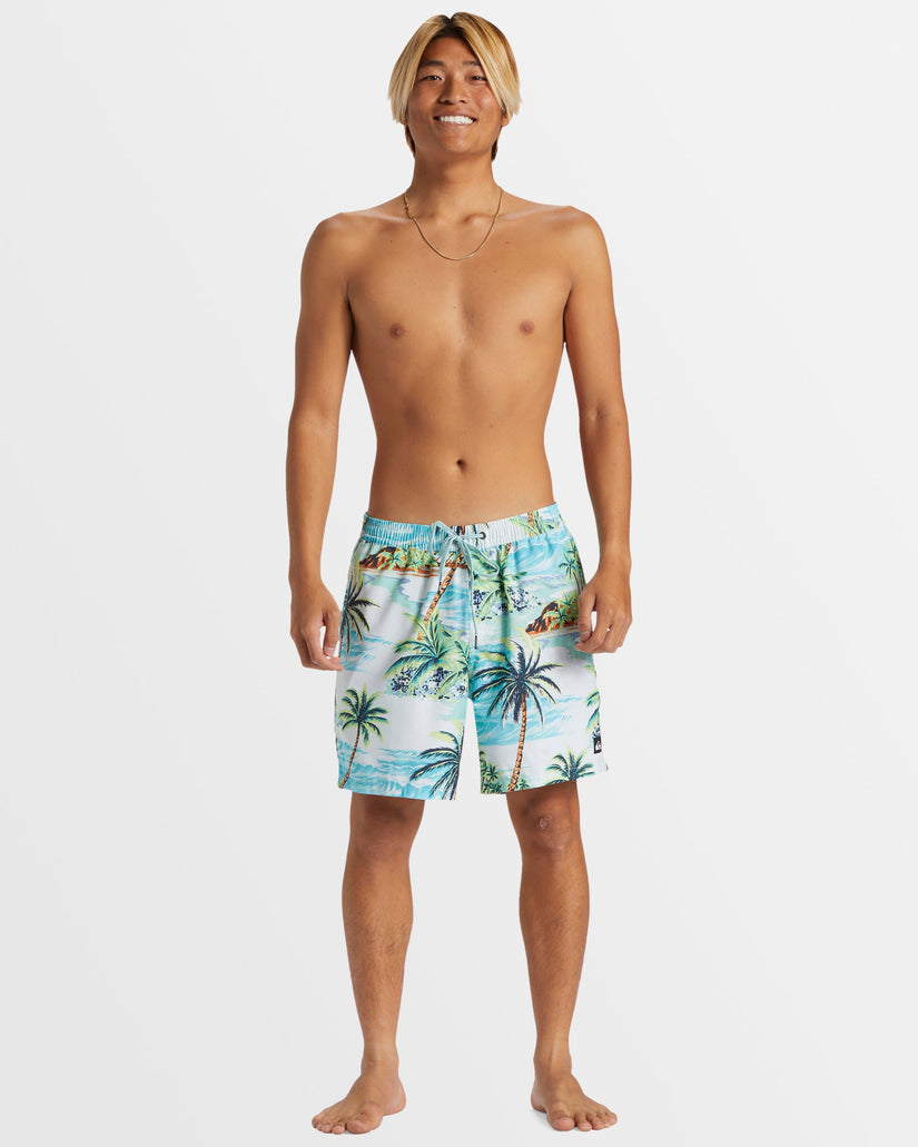 Eco-conscious beachside style that won't weigh you down. These 17" Everyday Mix Volleys from Quiksilver are made with our innovative Remade SuperSuede fabric that's engineered with recycled and upcycled material, then topped with a PFC-free hydrophobic treatment for quick-drying performance. The straight-leg fit and classic comfort waistband keep things relaxed, while the seasonal print provides style for your everyday adventures.