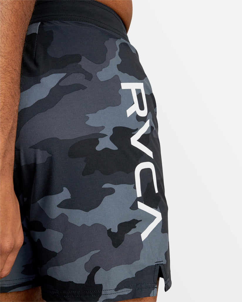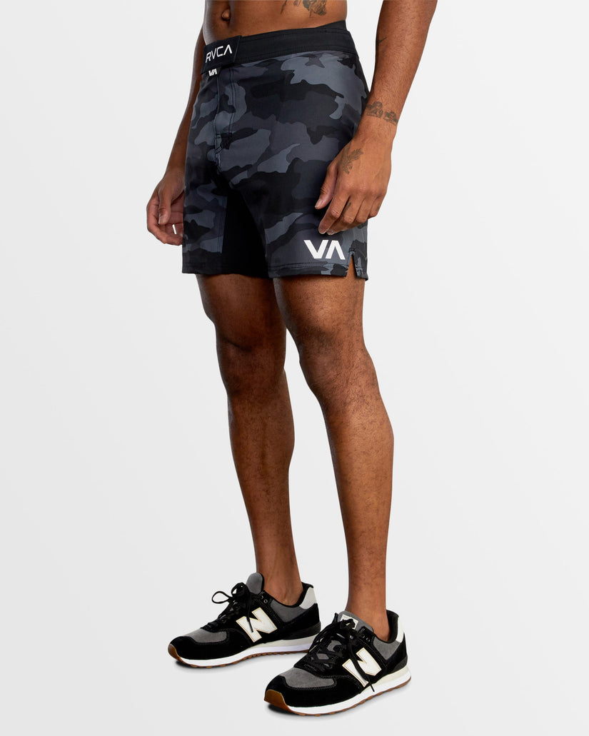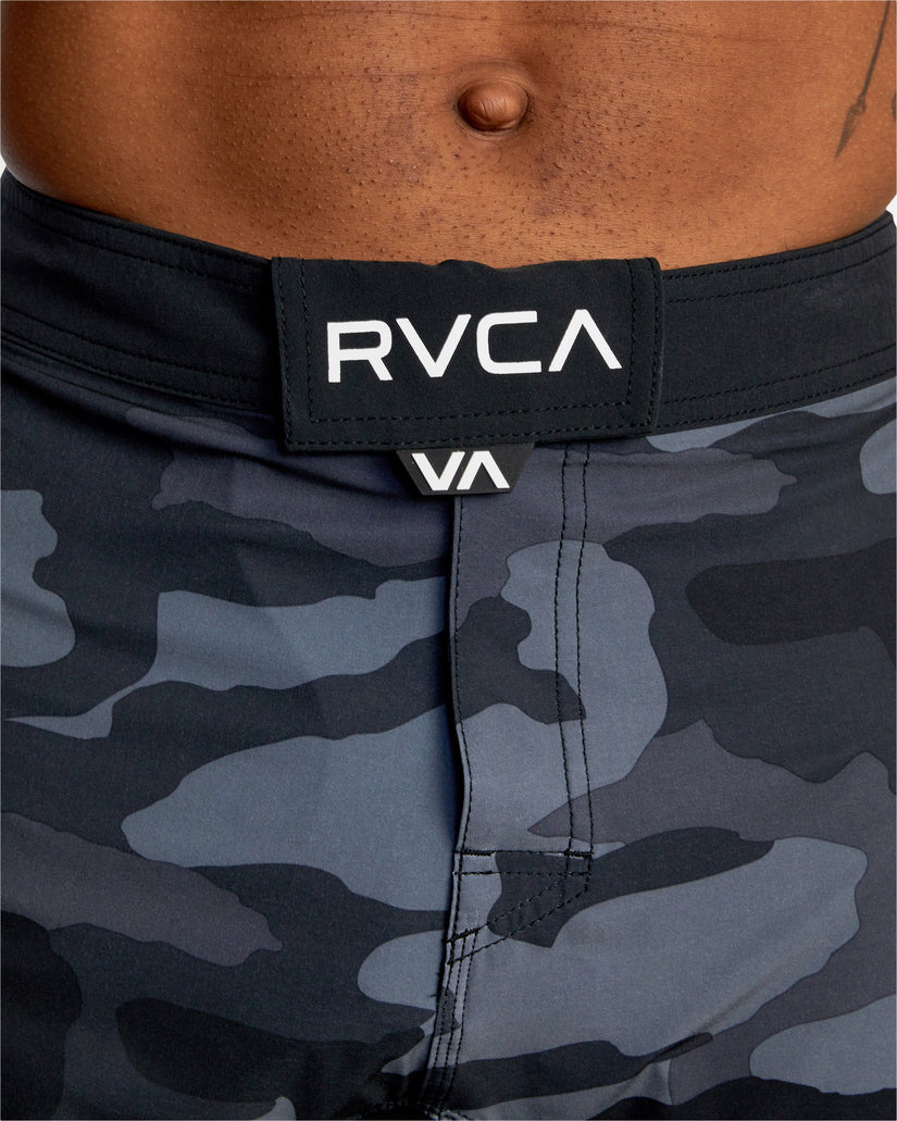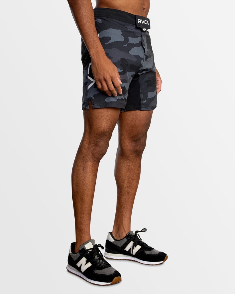 the rvca fight scrapper elastic walkshorts 17" are made from recycled 4-way stretch with an elastic drawcord waist and hook & loop closure at the fly. designed with split hem for extra flex, these men's performance shorts are topped with rvca branding throughout.