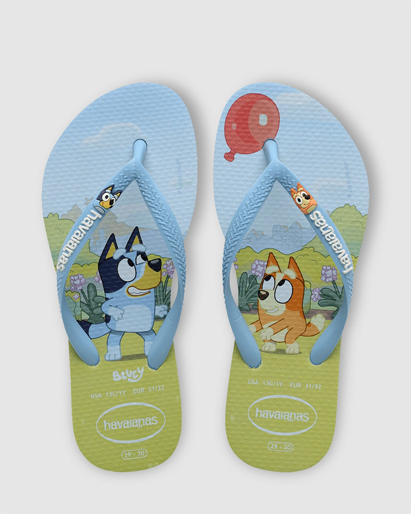 Let the adventures begin in our Kids Slim Bluey Thongs! Designed with comfort and style in mind, these girls flip flops are crafted from premium Brazilian rubber and feature a print of Bluey on the sole.