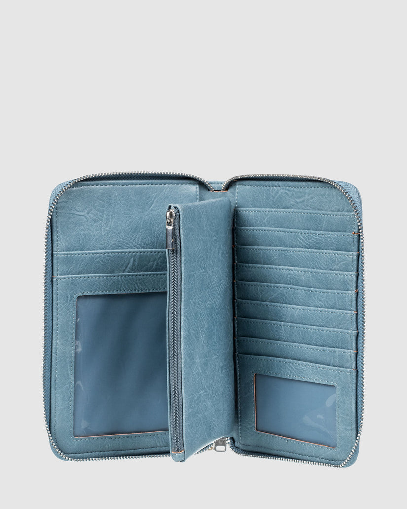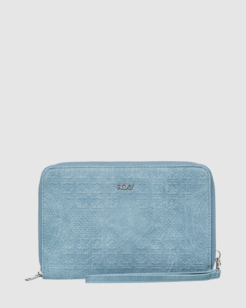 This zipper wallet from ROXY is a must-have accessory that combines style and function. Crafted with a vegan-friendly polyurethane fabric, it features a spacious interior with card slots, an ID holder, and a zippered pocket to keep your essentials organized. The removable wristlet strap adds versatility, while the ROXY branding and embossed artwork lend a chic, eye-catching look. Featured here in the Wild Wind colorway.