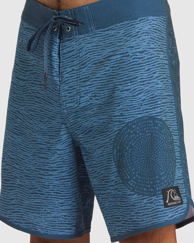 Step up your surf style with Quiksilver's OG Scallop Blank Canvas 18" Boardshorts from the Alex Kopps Collection. Made of organic cotton and recycled polyester with 4-way stretch, these scalloped surf trunks feature a performance fly, drawcord closure, back flap pocket, and exclusive collection artwork.