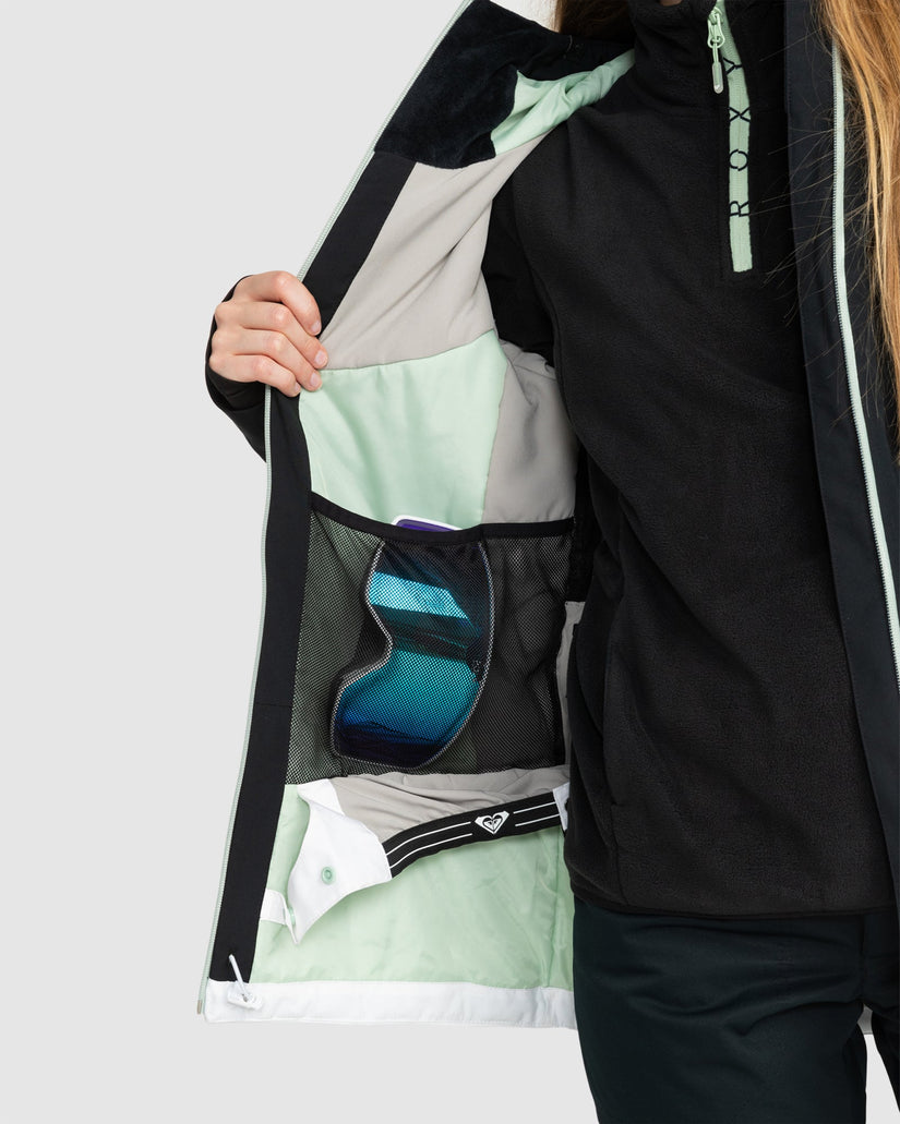 Conquer the mountain with our ROXY Peakside Technical Snow Jacket, featuring eco-conscious fabric enriched with an all-organic formula for skin protection in harsh conditions, plus DryFlight® waterproofing and WarmFlight® x2 insulation for ultimate warmth and comfort. Boost your warmth without the bulk by adding a compatible Roxy Warmlink Heating Belt and keep the fun going as the temps drop.