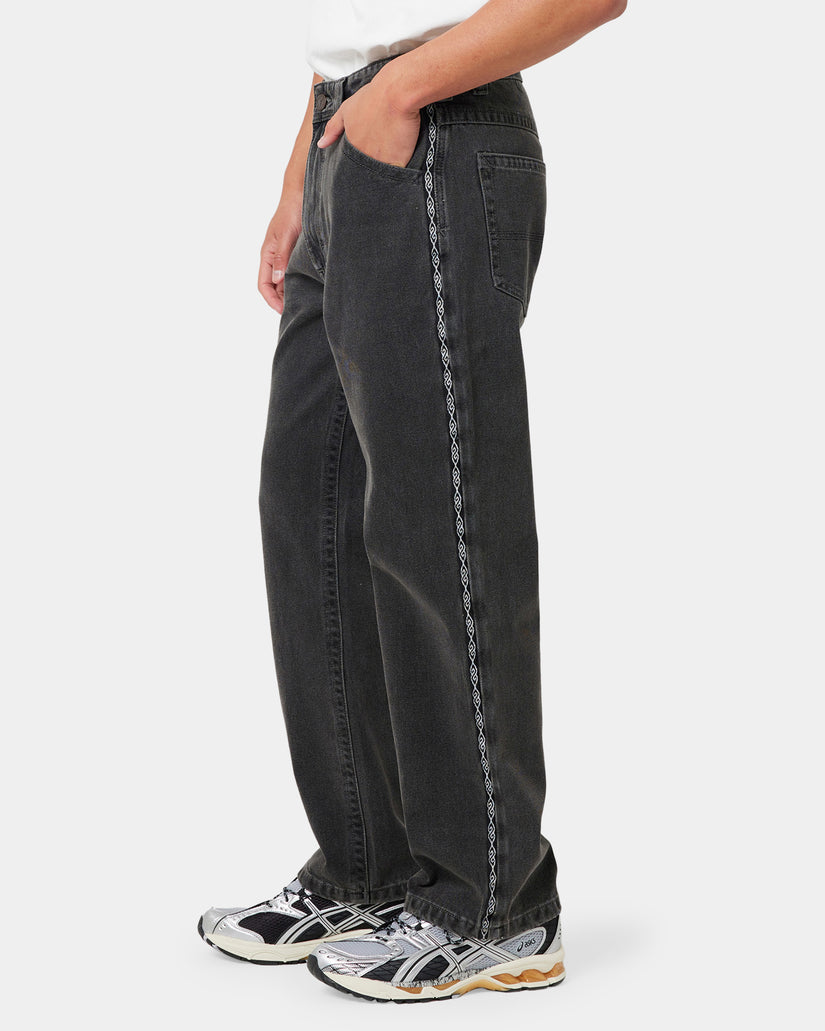 Blending our best-selling A5 Baggy with Rip Curl’s ‘90s archive, these jeans are built with a generous rise that sits just below your belly button, offering a relaxed, roomy fit through the seat and legs. The iconic ‘Search’ logo taping runs down the sides, while the dark-washed black keeps them versatile and easy to wear. With a 48 cm hem that stacks lightly on your shoes, they’re the perfect match for your new kicks. Crafted from rigid denim, they slowly soften and adapt to your body with regular wear. Throw on a hoodie and sneakers for a chilled look, or switch to a crew neck when it’s warm out.