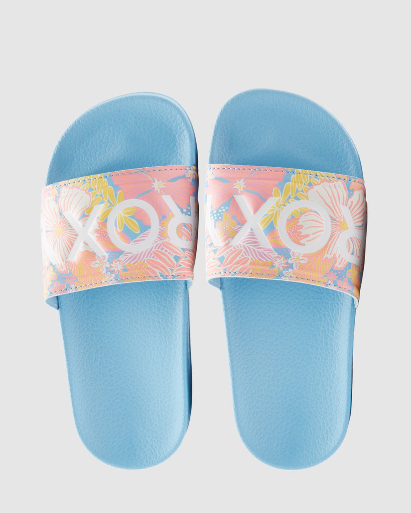 Slide into your comfort mode with the Slippy sandals for girls. The easy slip-on design features a comfortable, nylon-lined rubber upper with a ROXY logo and a moulded footbed. Complete with a textured outsole for plenty of traction and support.