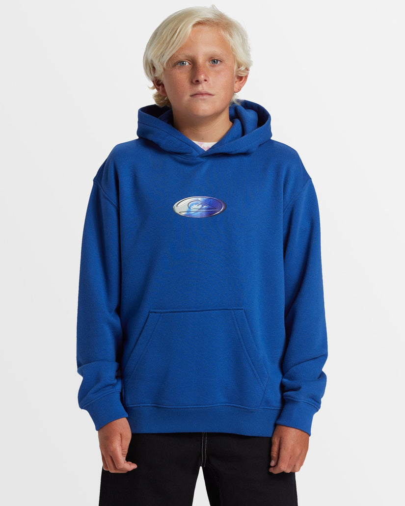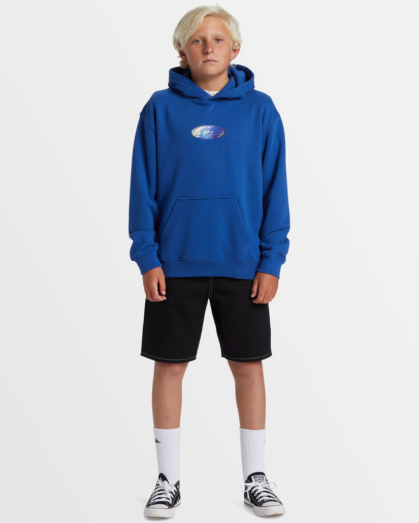 The boy's N.A.R hoodie from Quiksilver's Saturn collection is crafted with recycled cotton blend fabric and garment washed for an extra-soft feel. This sweatshirt has a regular fit with a kangaroo pouch pocket, front chest and back logo graphics, and a side seam flag label for an elevated finish. Action-ready and always on trend.