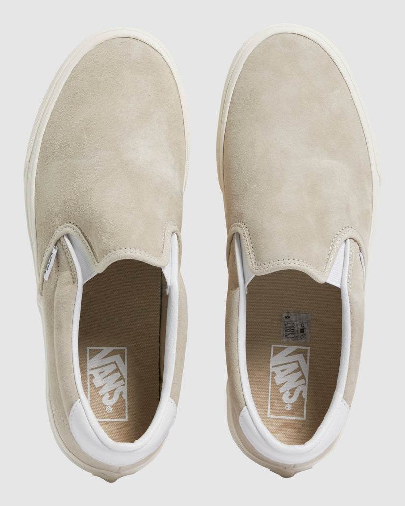 The Slip-On thats been Setting Trends Since 1979. The Classic Slip-On with its No Laces No Problems approach was first introduced to the world in 1979. Since then its become a pop culture icon known for its ability to dress up or down its reliable comfort and the flexibility to adapt to everyones style. With sleek suede uppers the Classic Slip-On Pig Suede is a timeless silhouette thats right for any occasion.