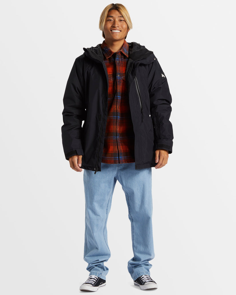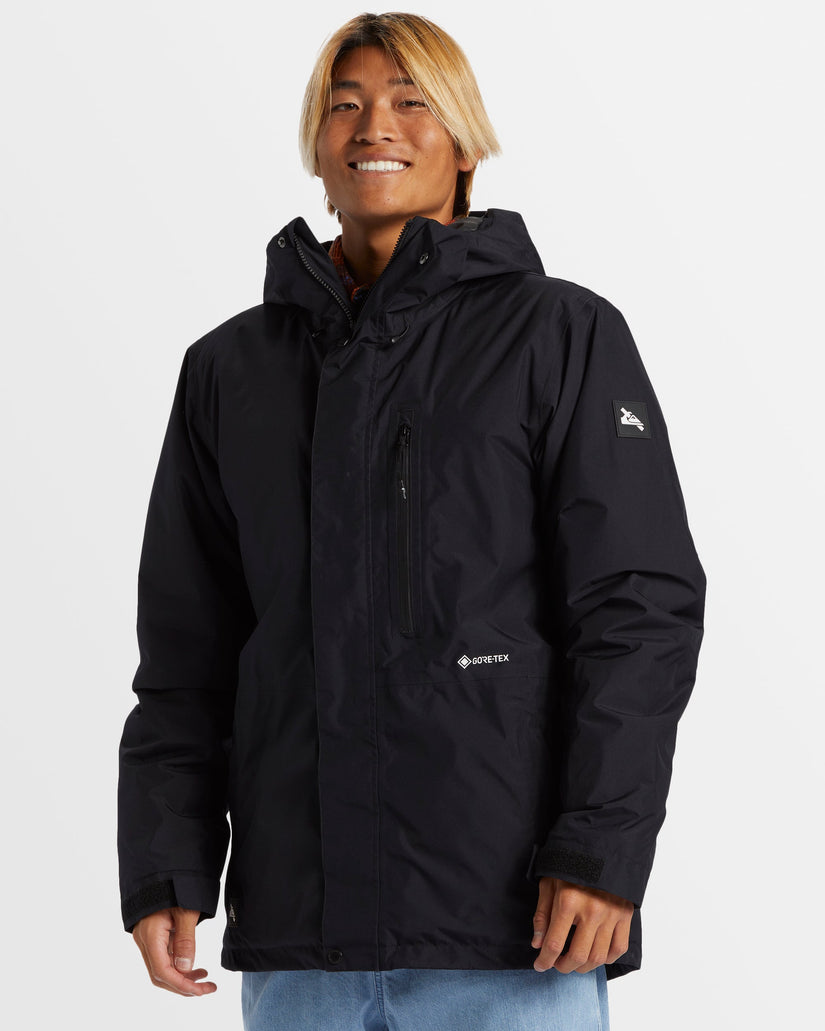Based on the tried and true Quiksilver Mission, this classic fit jacket comes fabricated in GORE-TEX® making this style waterproof and insulated. The fully taped seams, helmet compatible hood, fixed powder skirt, and mesh lined underarm vents are just a few tech details that make this jacket right for even the harshest, coldest conditions. Included for this collaboration are co-branded silicone labels at the front body and wearer's left sleeve.