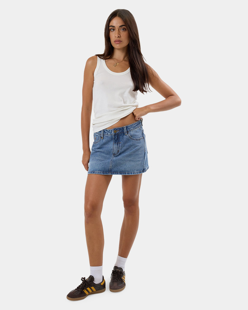 The Sophie Skirt in Dark Dust Blue is the timeless, iconic skirt you've been searching for. Made for warm-weather outings, it features a relaxed, low-rise waist with a mini length to project a long-legged silhouette. Made from non-stretch cotton denim in a faded vintage wash for a perpetually stylish finish you can wear for years to come.