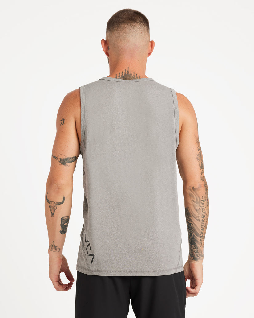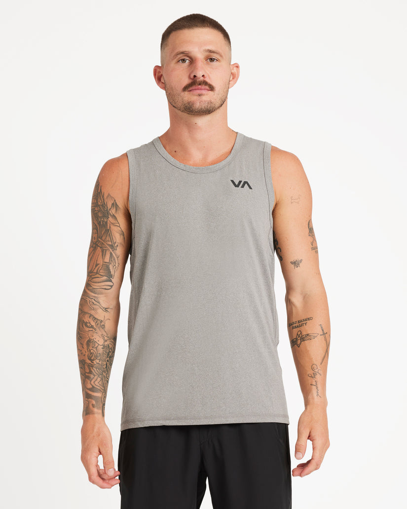 effortless comfort meets performance-enhancing design in the rvca sport vent tank top. made from poly stretch fabric with mesh gussets beneath the arms, this crewneck tank top is topped with rvca va prints throughout.