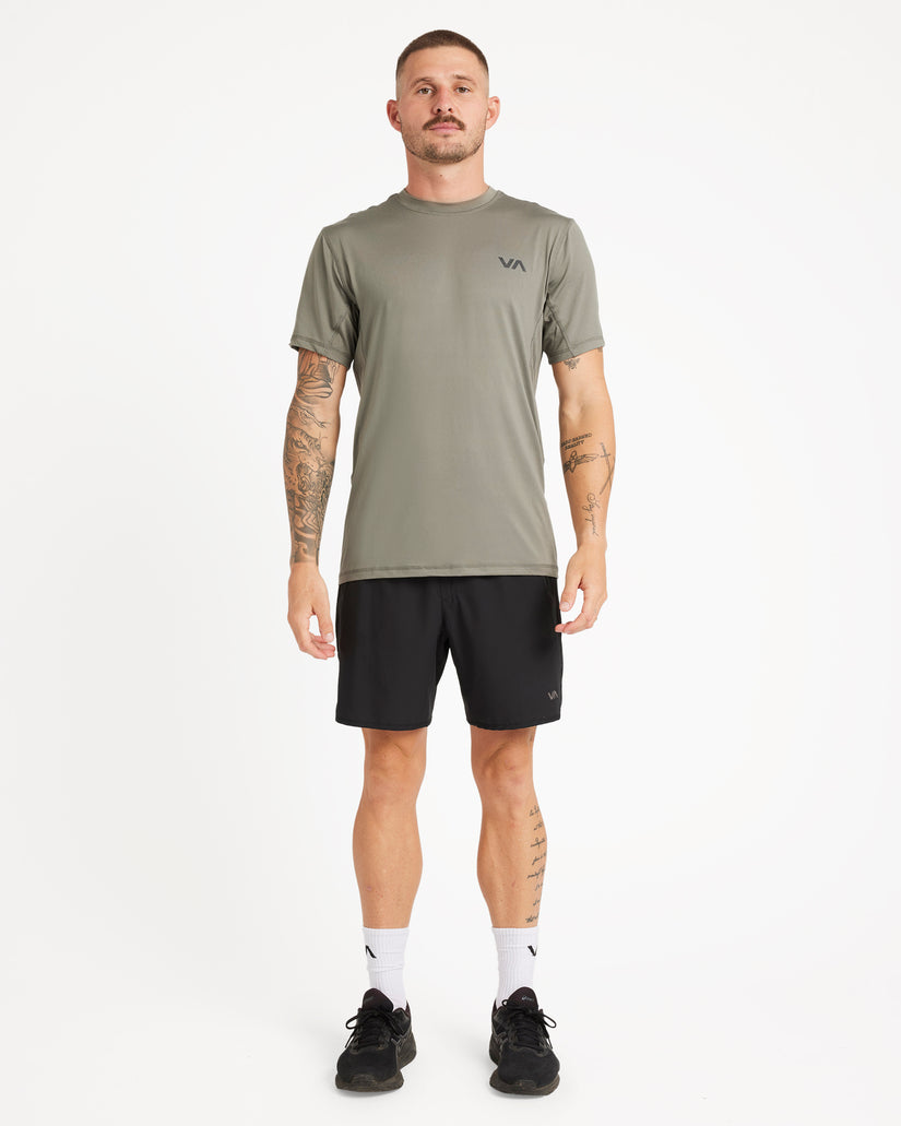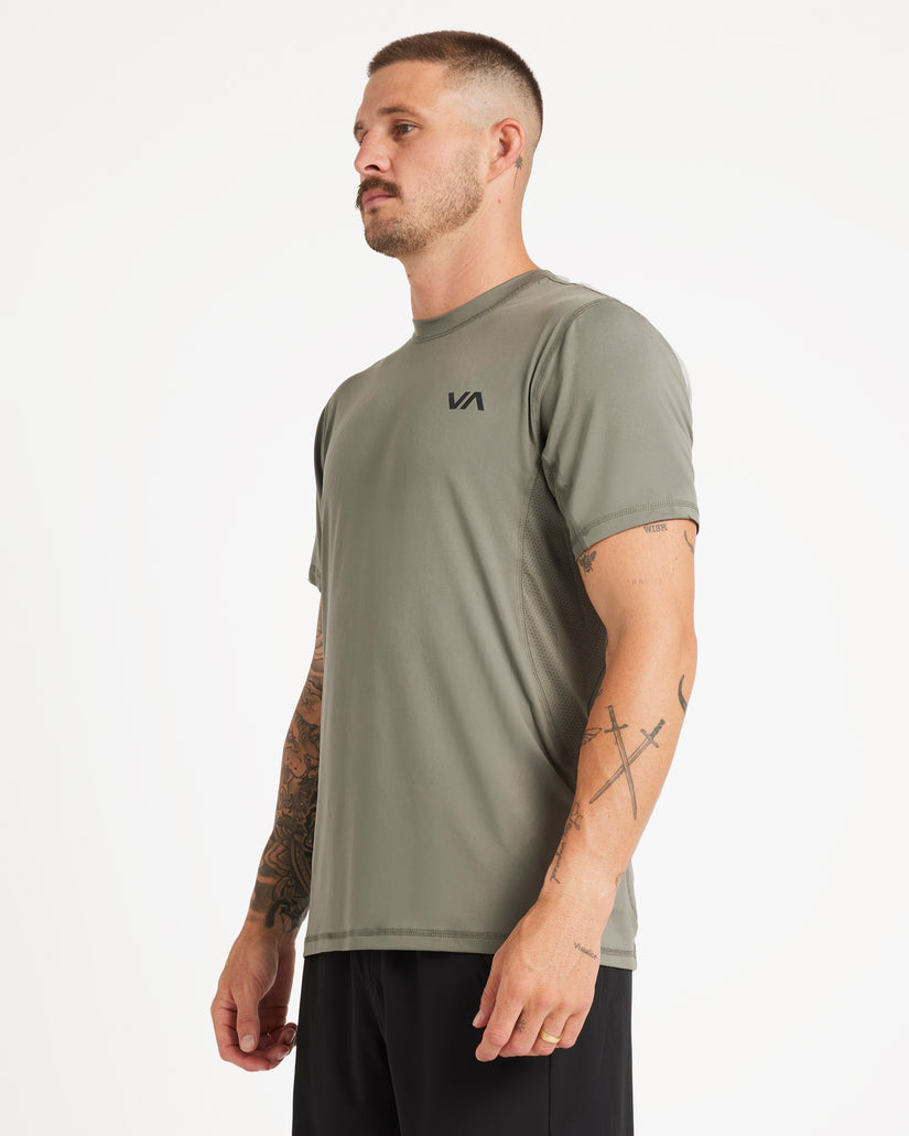 the rvca sport vent T-Shirt combines breathable comfort with effortless style. made from knit polyester stretch with mesh gussets under the arms, this men's sport t-shirt features a crew neckline, short sleeves and rvca logo branding at the front and back.